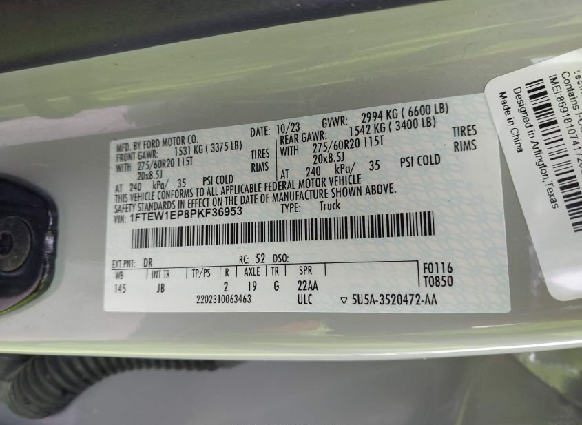 - VIN: 1FTEW1EP8PKF36953