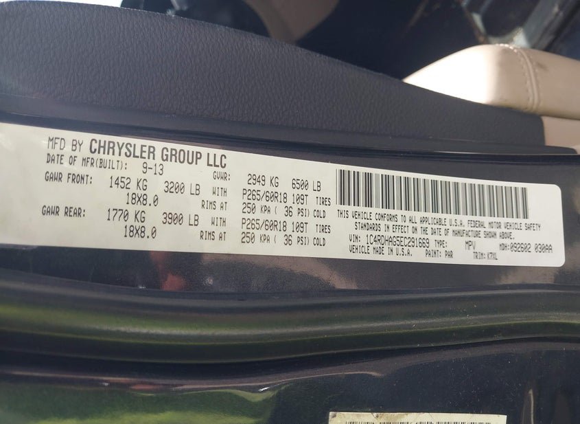 - VIN: 1C4RDHAG5EC291669