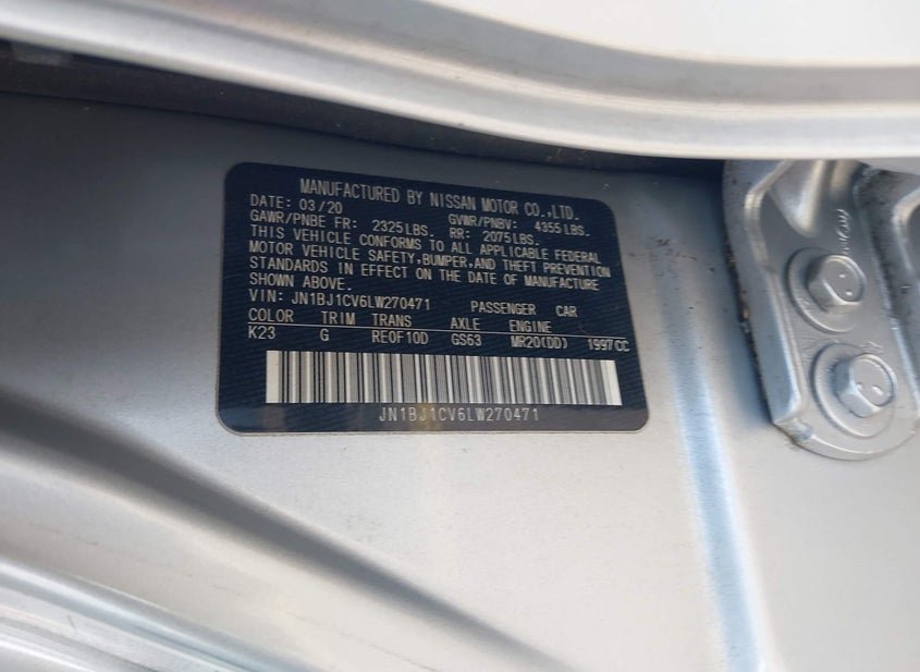 - VIN: JN1BJ1CV6LW270471