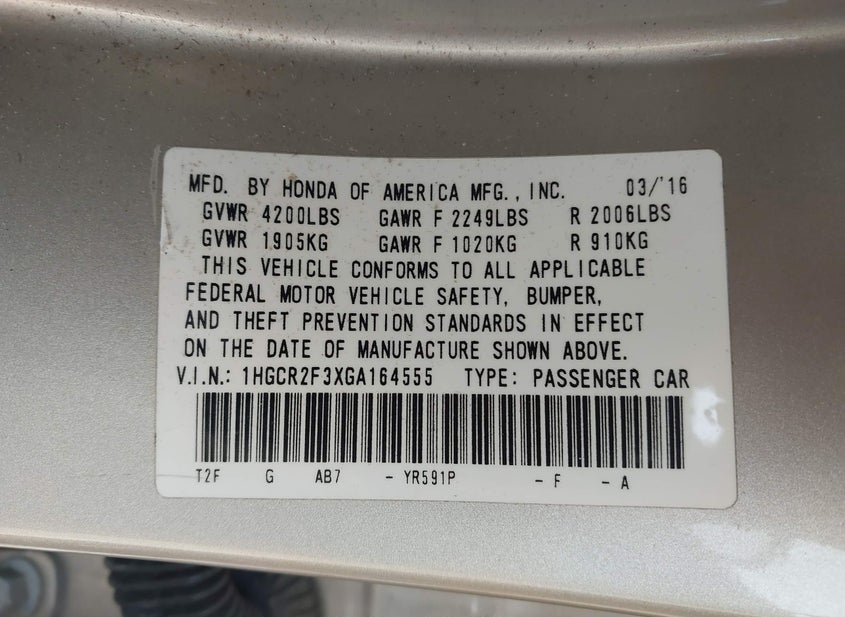 - VIN: 1HGCR2F3XGA164555