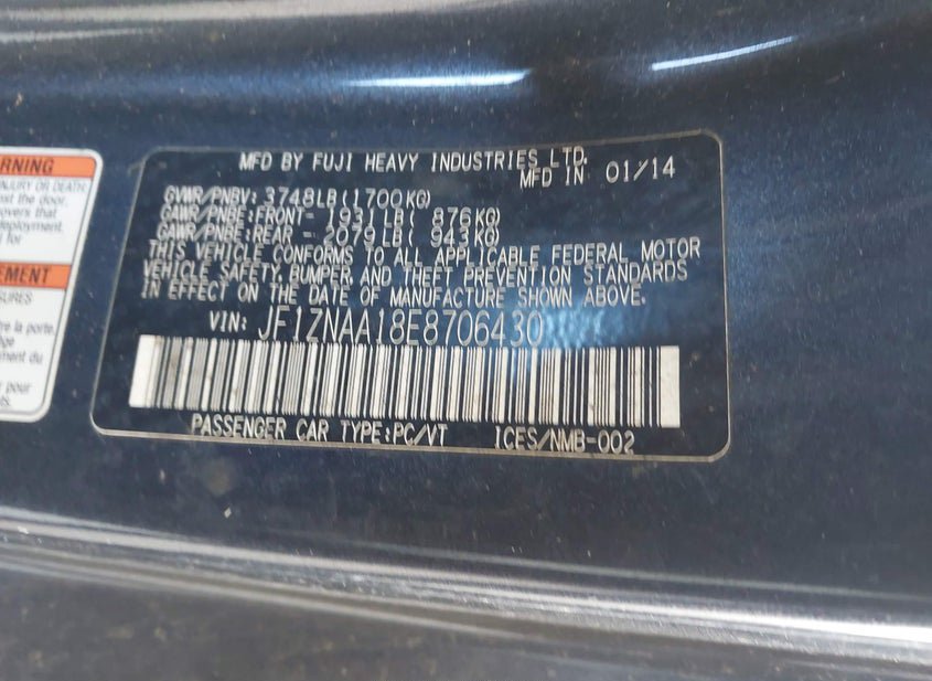 - VIN: JF1ZNAA18E8706430
