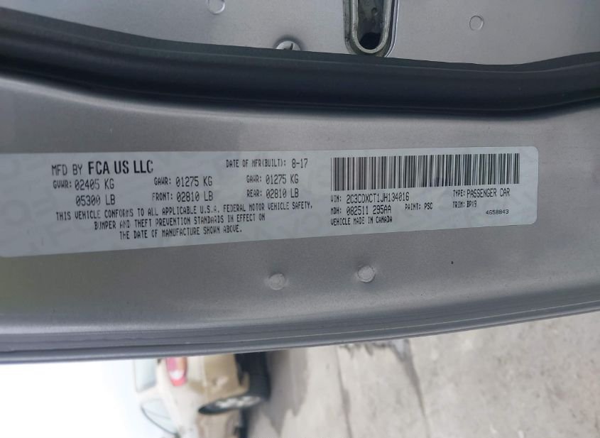 - VIN: 2C3CDXCT1JH134016
