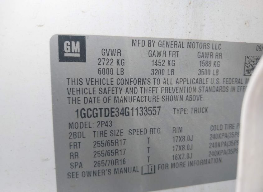 - VIN: 1GCGTDE34G1133557