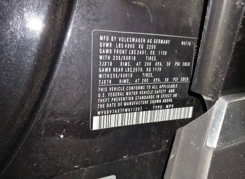 - Название лота: 2015 VOLKSWAGEN TIGUAN SEL