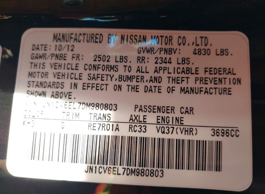 - VIN: JN1CV6EL7DM980803
