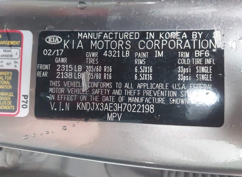 - VIN: KNDJX3AE3H7022198