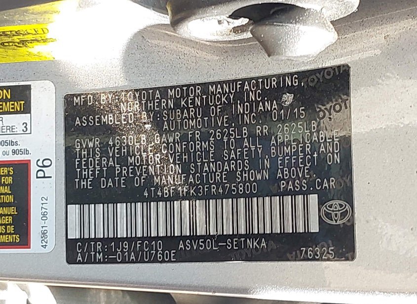 - VIN: 4T4BF1FK3FR475800
