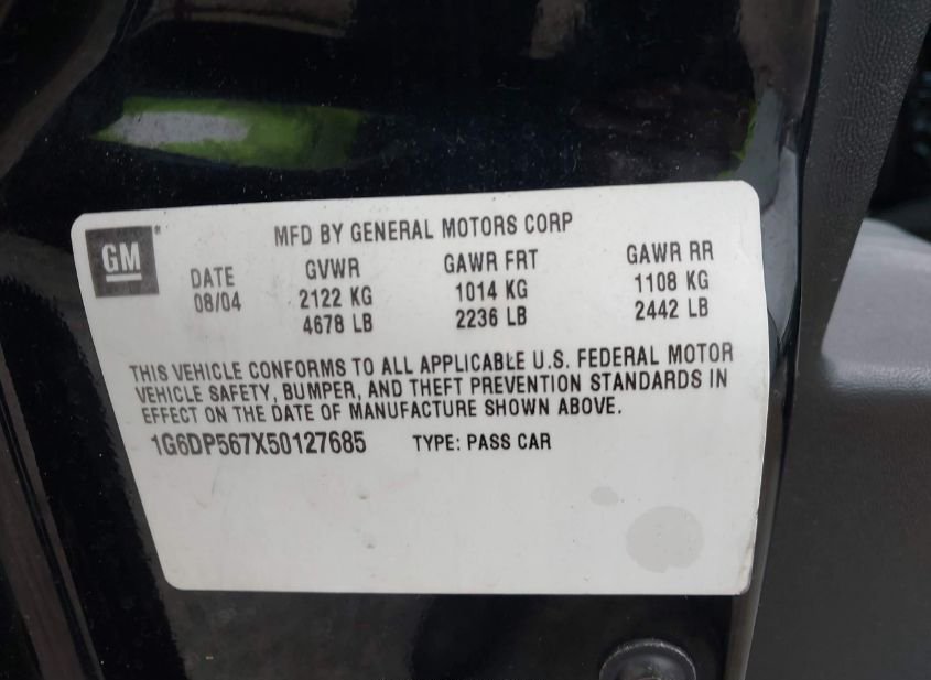 - VIN: 1G6DP567X50127685