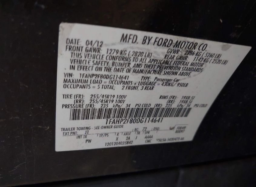 - VIN: 1FAHP2F80DG114641