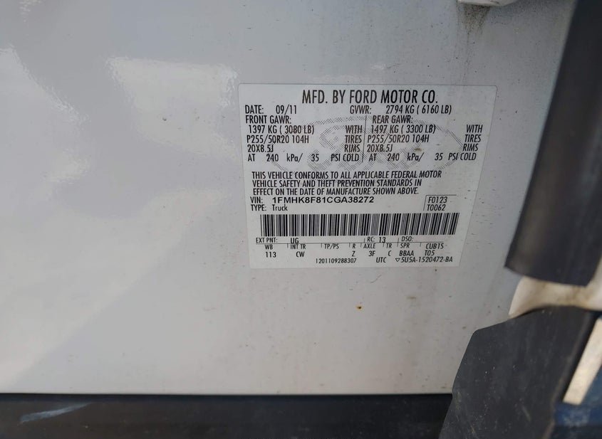 - VIN: 1FMHK8F81CGA38272