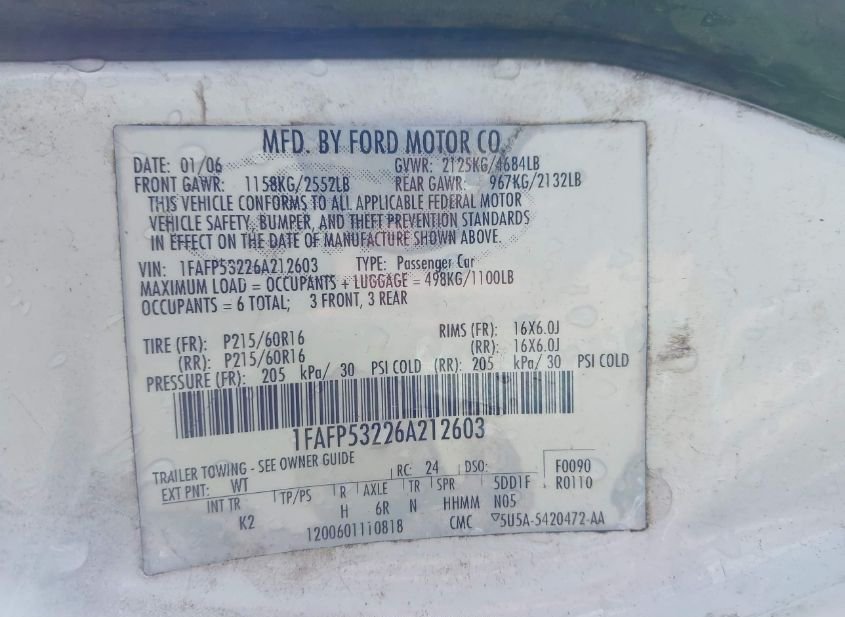 - VIN: 1FAFP53226A212603