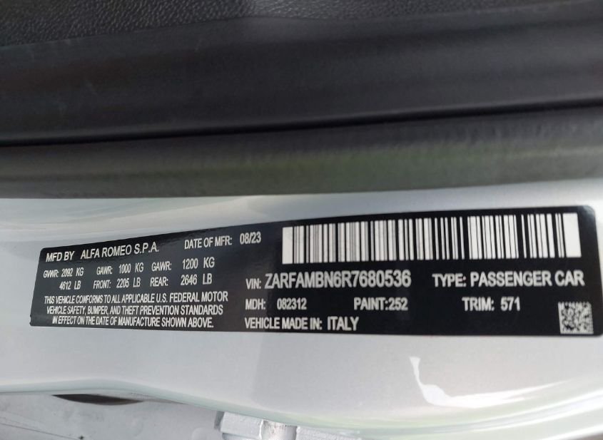 - VIN: ZARFAMBN6R7680536