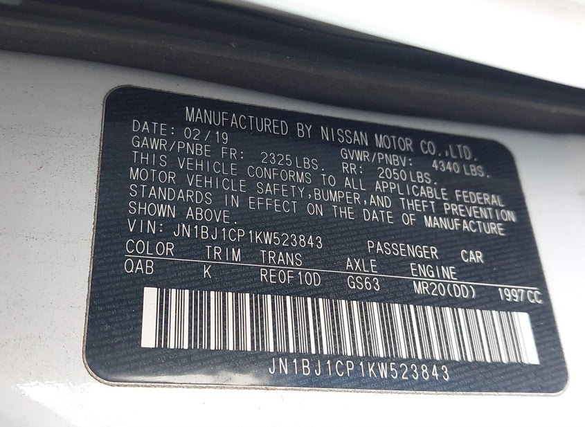 - VIN: JN1BJ1CP1KW523843
