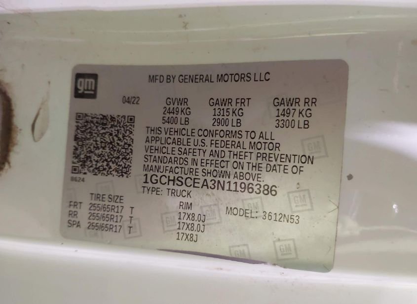 - VIN: 1GCHSCEA3N1196386
