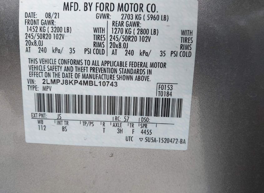 - VIN: 2LMPJ8KP4MBL10743