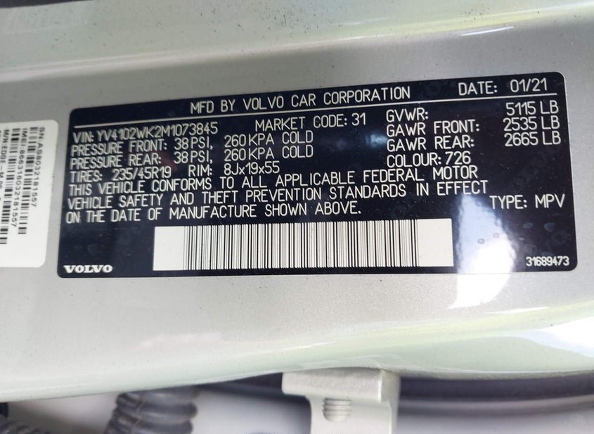 - VIN: YV4102WK2M1073845