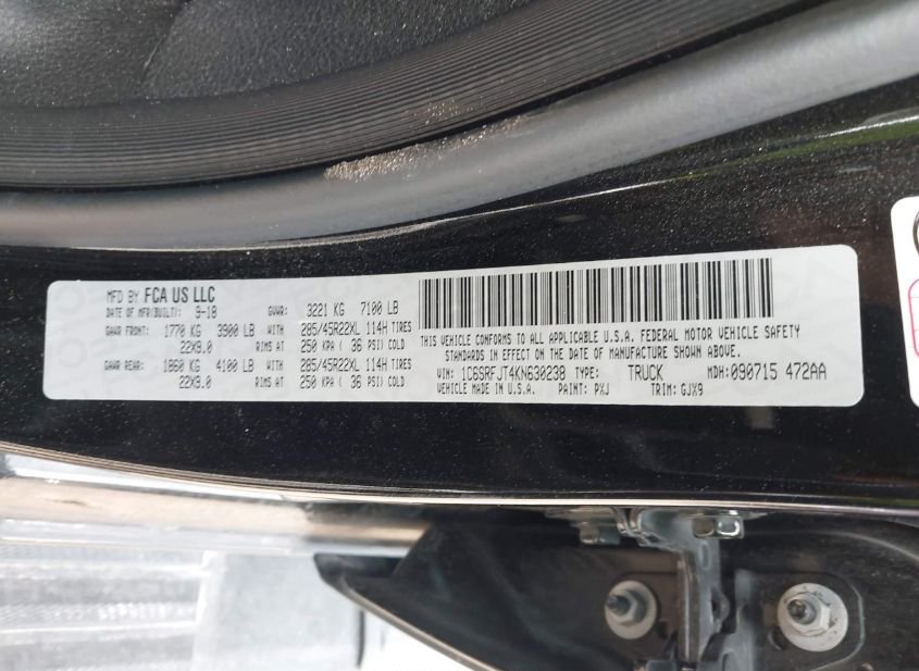 - VIN: 1C6SRFJT4KN630238