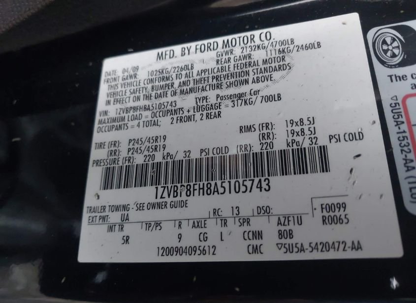 - VIN: 1ZVBP8FH8A5105743