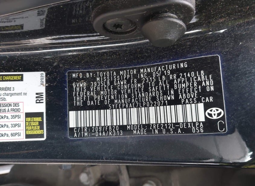 - VIN: 5YFEPRAE7LP022071