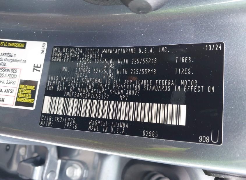 - VIN: 7MUFBABGXRV058122