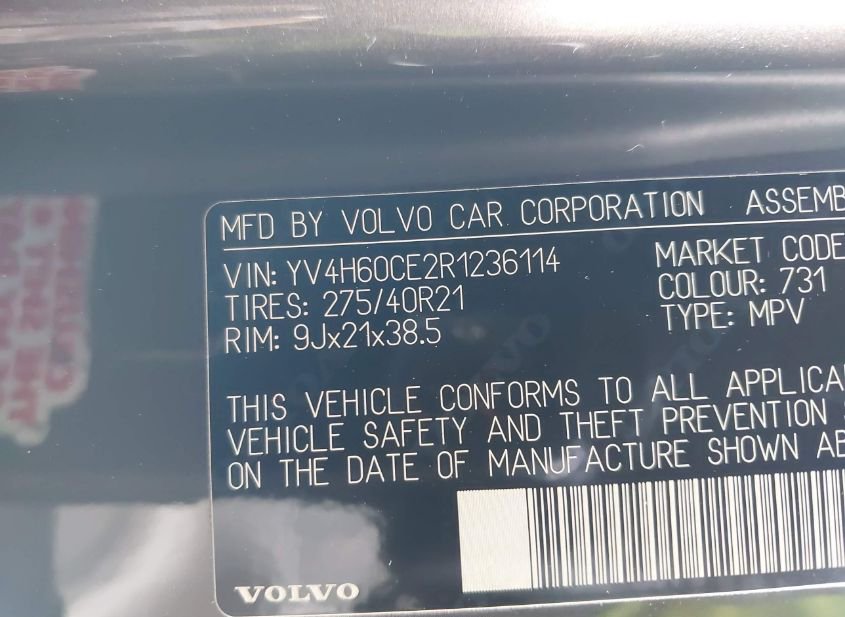 - VIN: YV4H60CE2R1236114