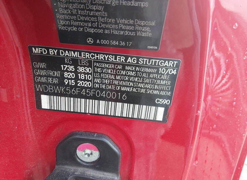 - VIN: WDBWK56F45F040016