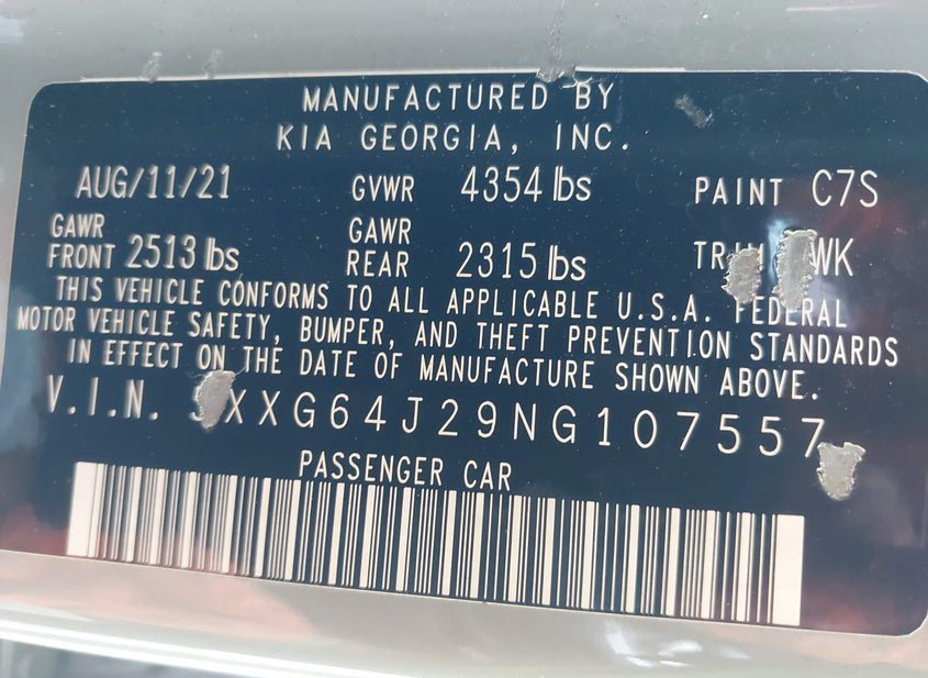 - VIN: 5XXG64J29NG107557