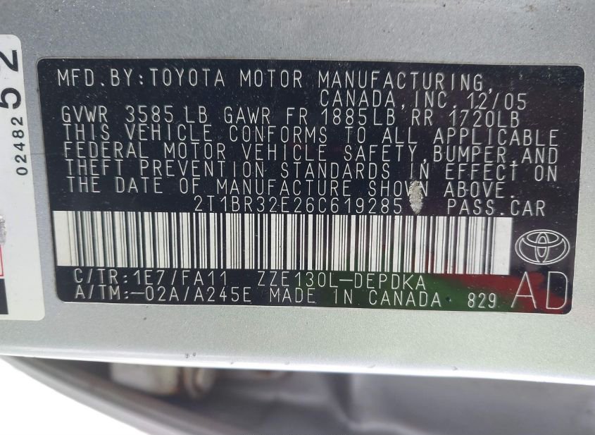 - VIN: 2T1BR32E26C619285