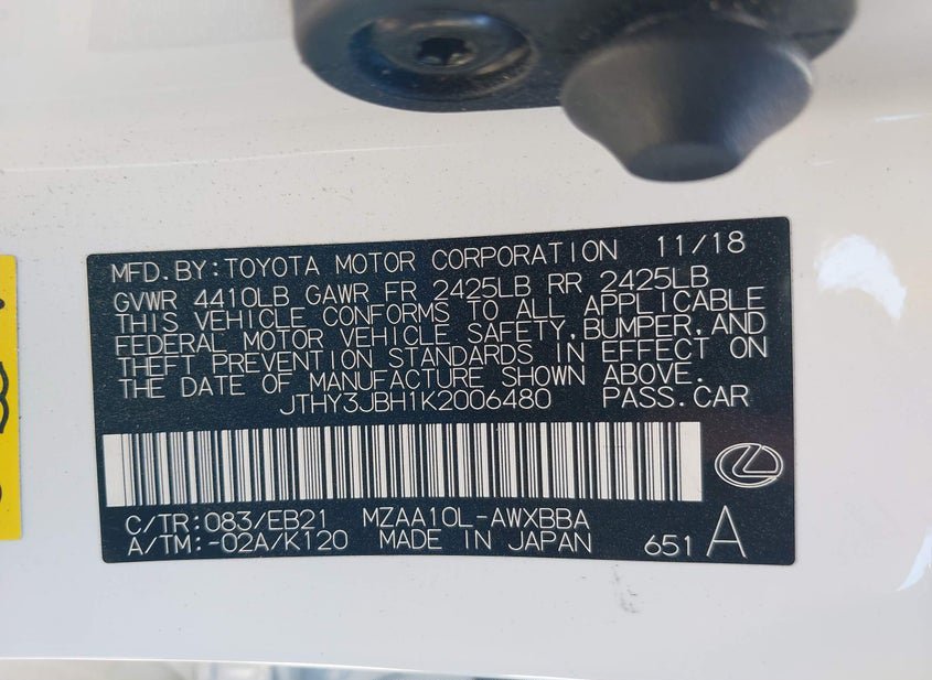 - VIN: JTHY3JBH1K2006480