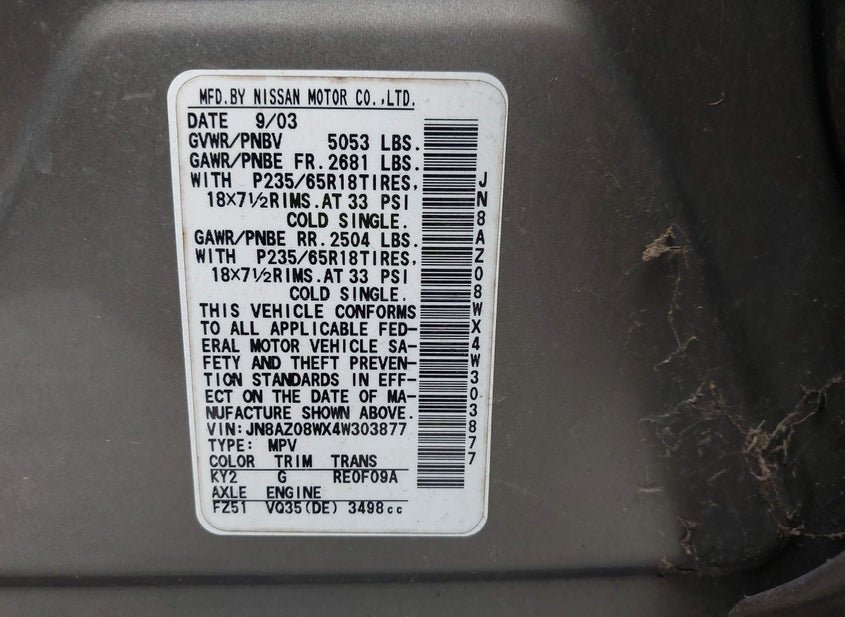- VIN: JN8AZ08WX4W303877