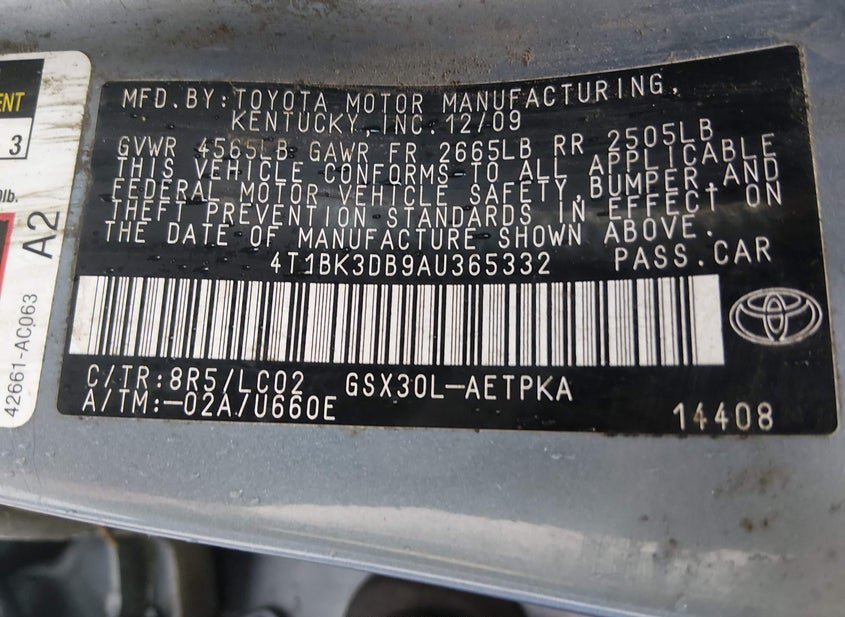 - VIN: 4T1BK3DB9AU365332