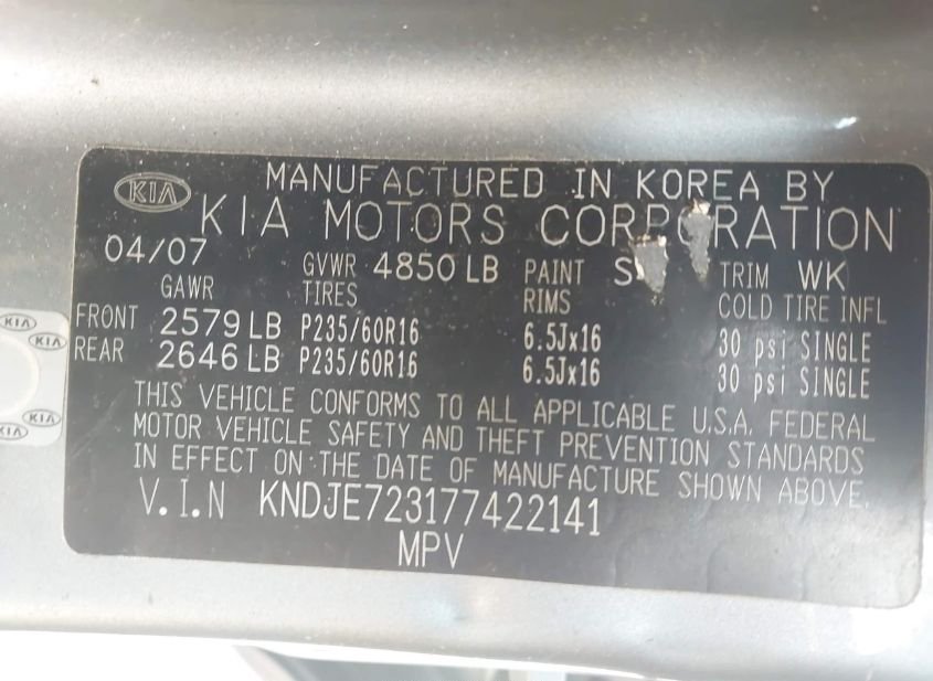 - VIN: KNDJE723177422141