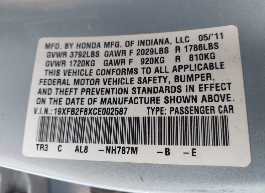 - VIN: 19XFB2F8XCE002587