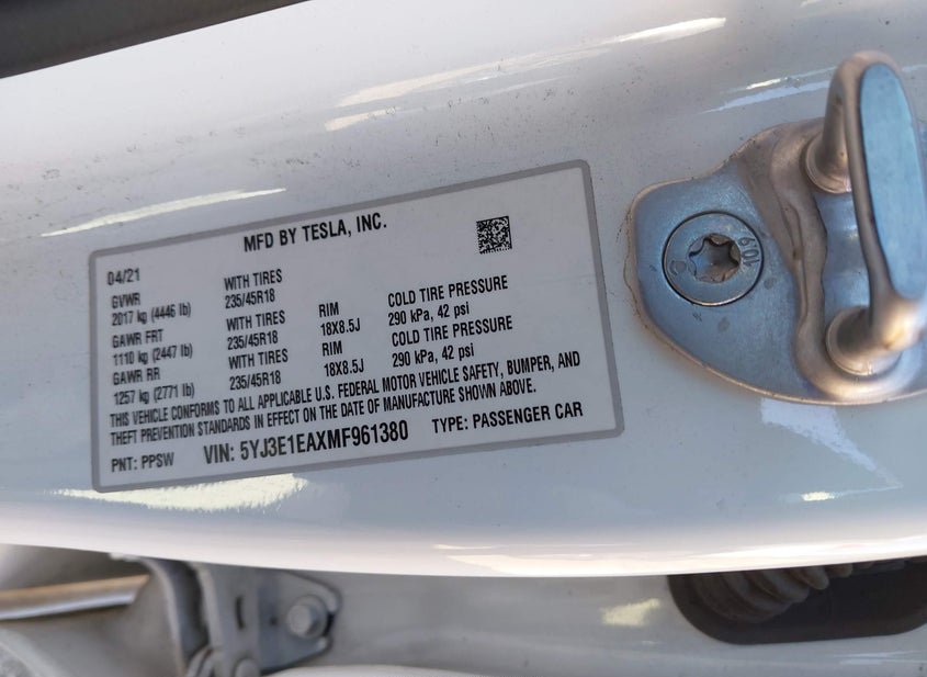 - VIN: 5YJ3E1EAXMF961380