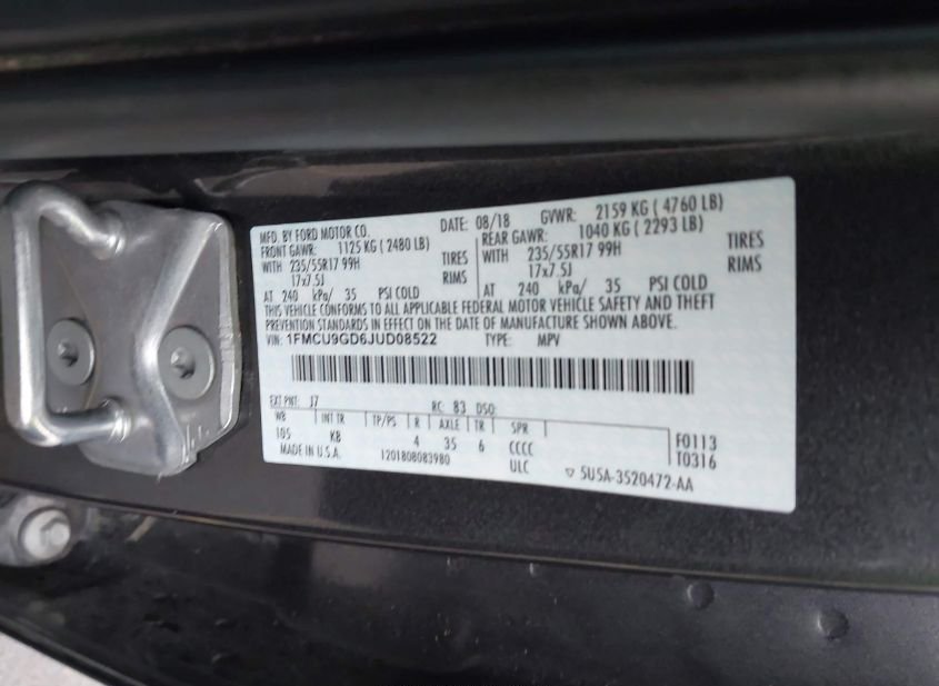 - VIN: 1FMCU9GD6JUD08522