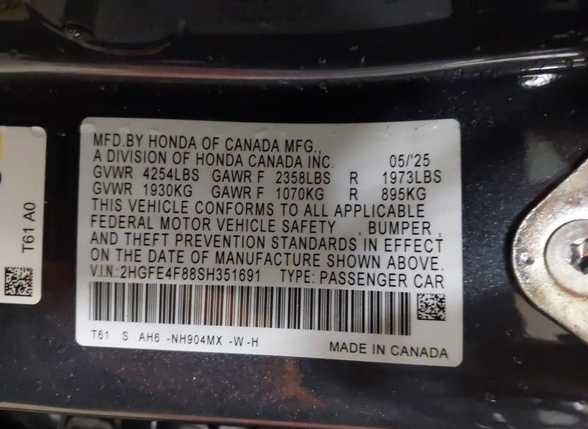 - VIN: 2HGFE4F88SH351691