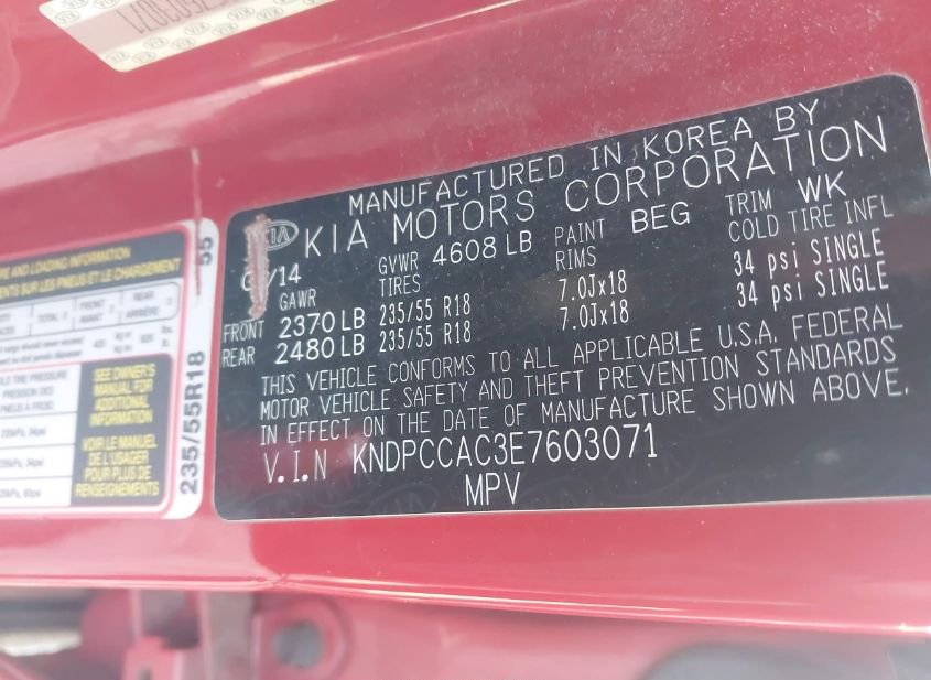 - VIN: KNDPCCAC3E7603071