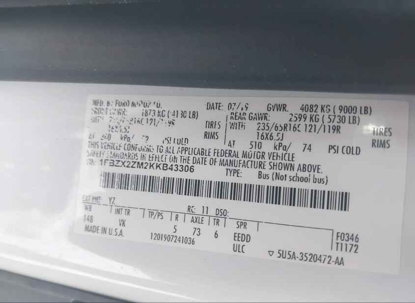 - VIN: 1FBZX2ZM2KKB43306