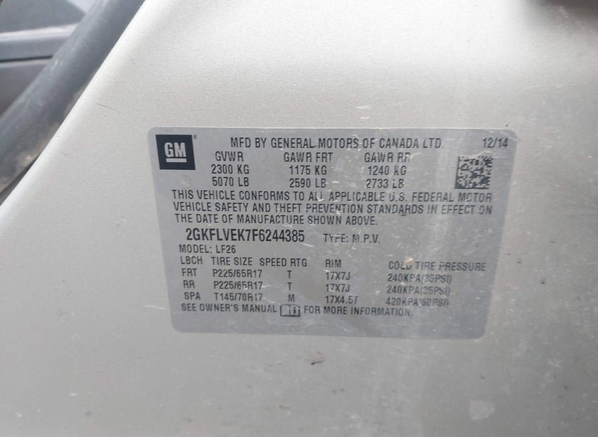 - VIN: 2GKFLVEK7F6244385