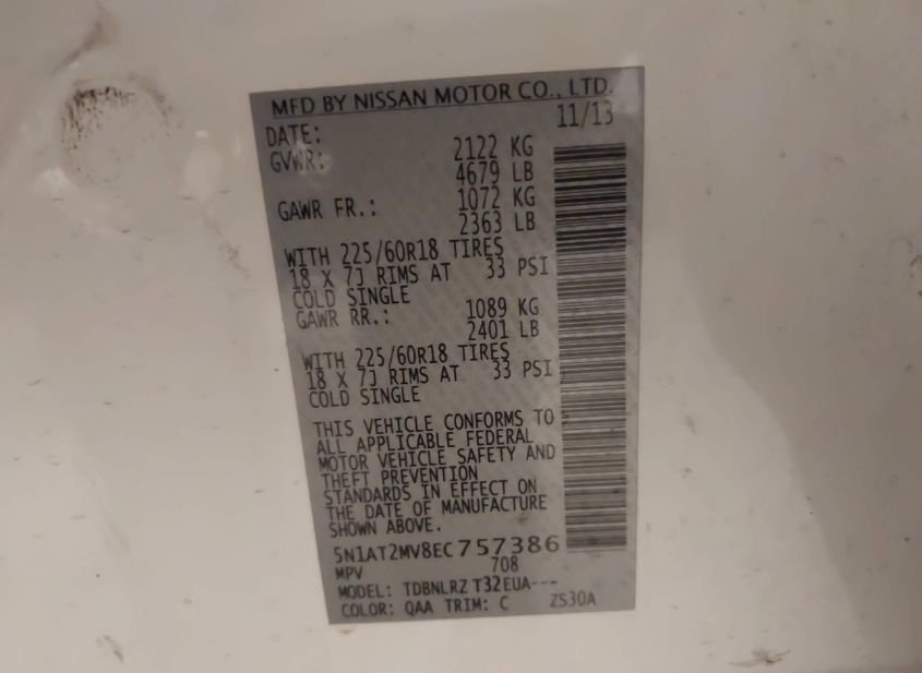 - VIN: 5N1AT2MV8EC757386