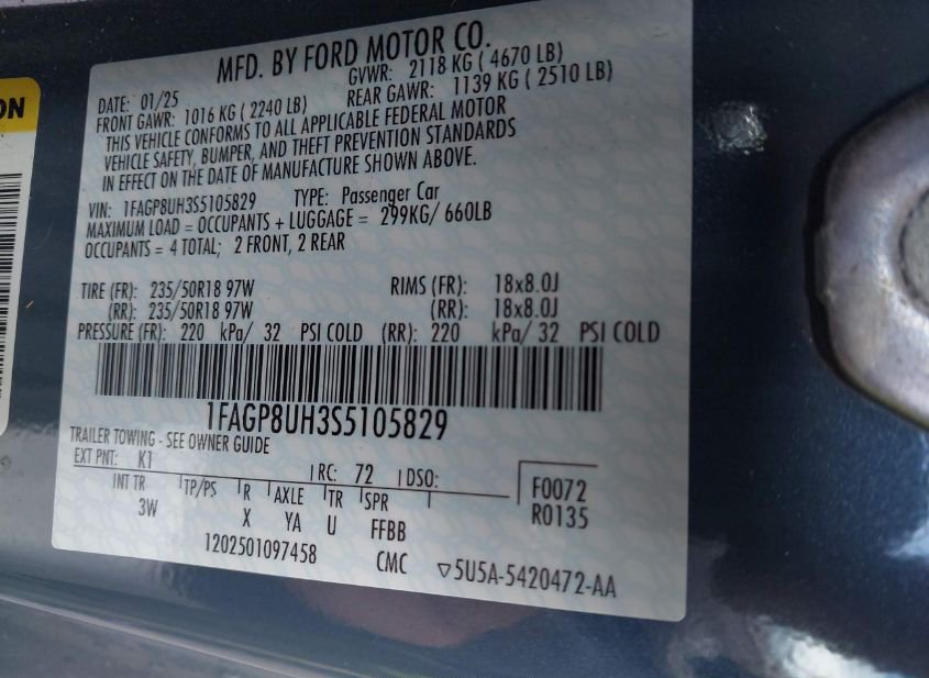- VIN: 1FAGP8UH3S5105829