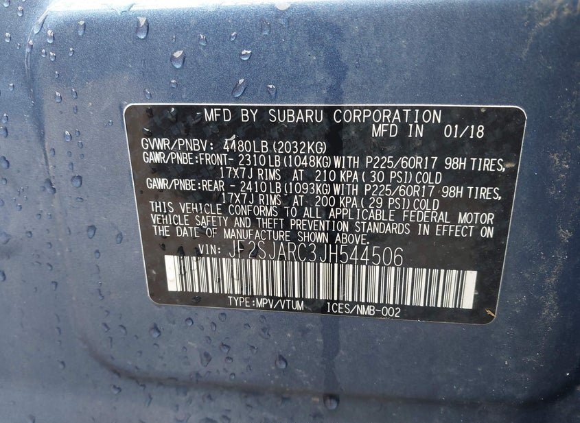 - VIN: JF2SJARC3JH544506