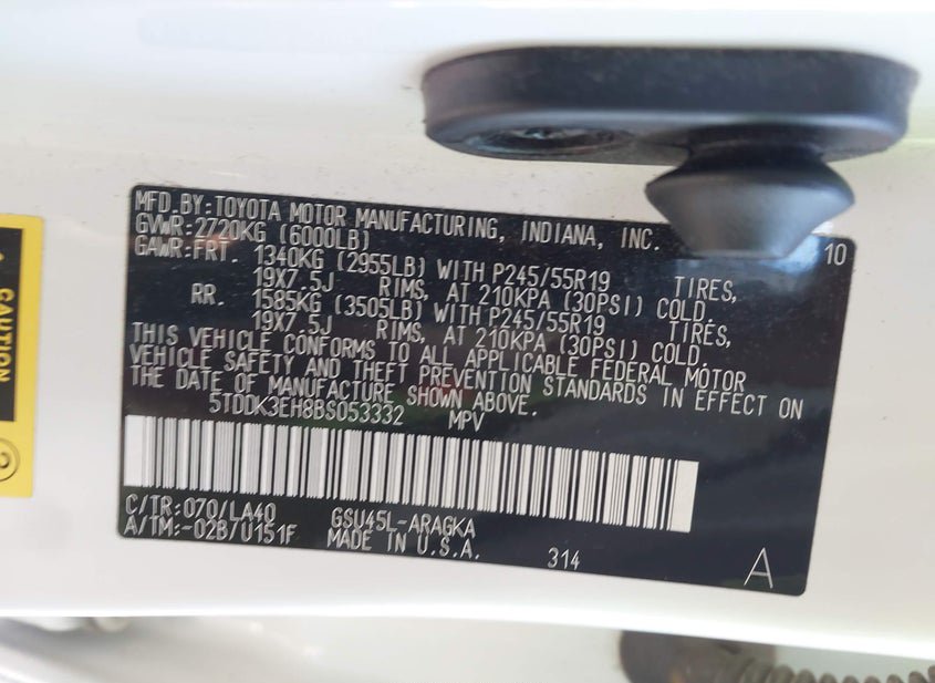 - VIN: 5TDDK3EH8BS053332