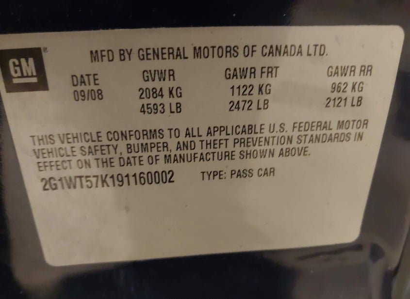 - VIN: 2G1WT57K191160002
