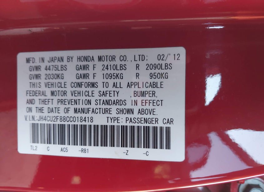 - VIN: JH4CU2F88CC018418