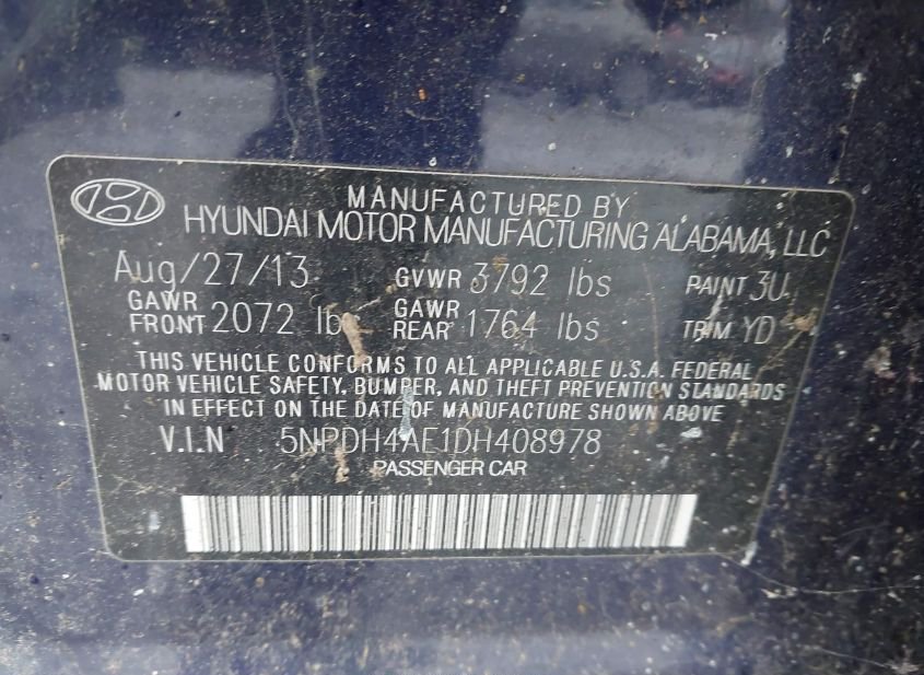 - VIN: 5NPDH4AE1DH408978
