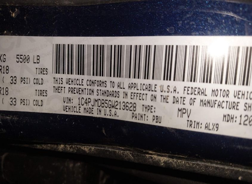- VIN: 1C4PJMDB5GW213628