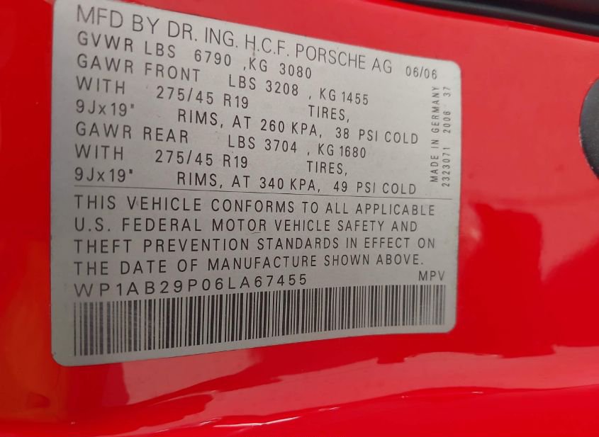 - VIN: WP1AB29P06LA67455