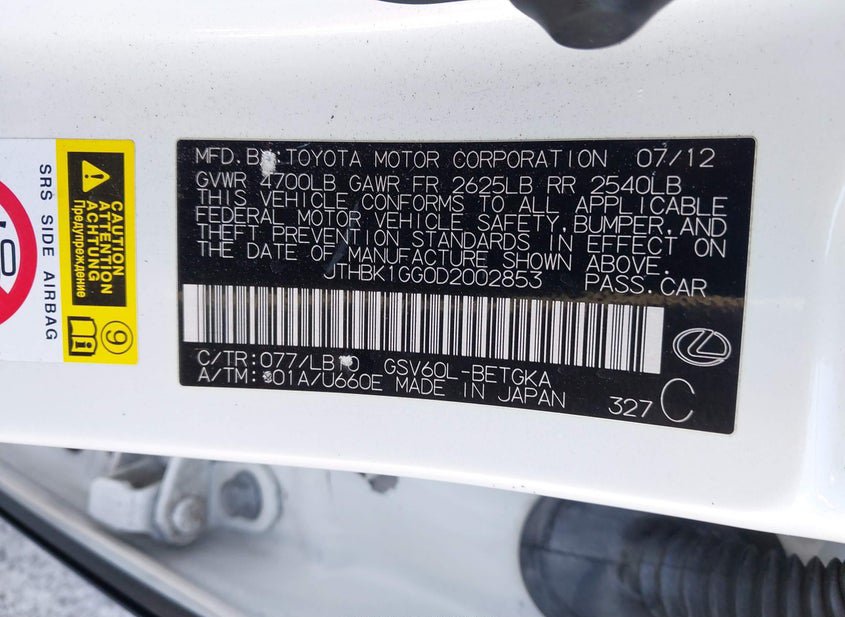 - VIN: JTHBK1GG0D2002853