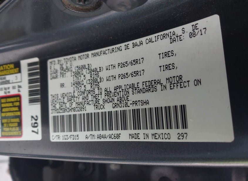 - VIN: 3TMDZ5BN3HM032091